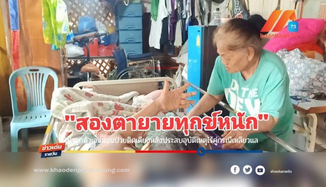 นครปฐมสองตายายทุกข์หนักต้องทิ้งอาชีพก่อสร้างเพื่อมาเฝ้าลูกตัวเองนอนป่วยติดเตียงหลังประสบอุบัติเหตุไร้คู่กรณีเหลียวแล