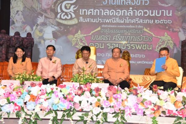 เมื่อวันที่ 21 กุมภาพันธ์ 2566 ที่โรงละครเธียร์เตอร์ อาคารเฉลิมพระเกียรติในโอกาสฉลองพระชนมายุ 5 รอบ 2 เมษายน 2558 มหาวิทยาลัยราชภัฏศรีสะเกษ นายสำรวย เกษกุล ผู้ว่าราชการจังหวัดศรีสะเกษ พร้อมด้วย นายวิชิต ไตรสรณกุล นายก อบจ.ศรีสะเกษ ผศ.ดร.ประกาศิต อานุภาพแสนยากร อธิการบดีมหาวิทยาลัยราชภัฏศรีสะเกษ และนางนงเยาว์ จิรันดร ผอ.ททท. สุรินทร์-ศรีสะเกษ ได้ร่วมกันแถลงข่าวเทศกาลดอกลำดวนบานสืบสานประเพณีสี่เผ่าไทศรีสะเกษ ประจำปี 2566 ซึ่งจังหวัดศรีสะเกษร่วมกับองค์การบริหารส่วนจังหวัดศรีสะเกษ มหาวิทยาลัยราชภัฏศรีสะเกษ ภาครัฐ ภาคเอกชน และประชาชนชาวจังหวัดศรีสะเกษ ได้ร่วมกันจัดขึ้นในระหว่างวันที่ 8-12 มีนาคม 2566 ที่สวนสมเด็จพระศรีนครินทร์ศรีสะเกษ อำเภอเมืองศรีสะเกษ โดยมีนายอภิศักดิ์ แซ่จึง นายวิเชียร ถิระเลิศพานิชย์และนายมานะพันธ์ อังคสกุลเกียรติ รองนายก อบจ.ศรีสะเกษ ดร.กัลยาณี ธรรมจารีย์ นายกสมาคมส่งเสริมเครือข่ายการท่องเที่ยวศรีสะเกษ และนายชัยชนะ ผลาพงศ์ รองนายกเทศมนตรีเมืองศรีสะเกษ นำหัวหน้าส่วนราชการจังหวัดศรีสะเกษ ข้าราชการและสื่อมวลชนจังหวัดศรีสะเกษ ร่วมรับฟังการแถลงข่าวเทศกาลดอกลำดวนบานสืบสานประเพณีสี่เผ่าไทศรีสะเกษ ประจำปี 2566 เป็นจำนวนมาก