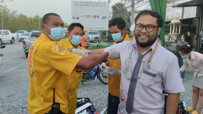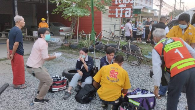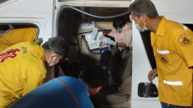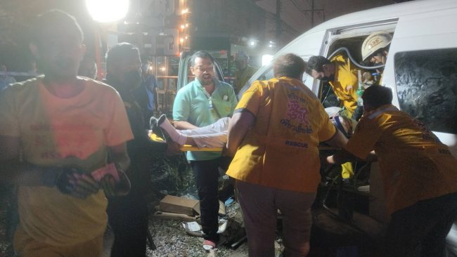 เมื่อเวลา18.10น.(21ก.พ.2566)พ.ต.ต.ภคิน นันบุญ สารวัตรเวรสอบสวนสภ.หนองขาม ได้รับแจ้งจากอาสาหน่วยกู้ภัยเพียวเยี้ยงไท้ศรีราชาว่า มีรถพ่วง18ล้อพุ่งชนรถตู้ที่วิ่งสวนทางมามีผู้ได้รับบาดเจ็บ 3 ราย ติดภายในบาดเจ็บสาหัส 1 ราย เหตุเกิดที่ถนนสายหนองค้อ-เขาชี หมู่9 ตำบลหนองขาม อำเภอศรีราชา จ.ชลบุรี หลังรับแจ้งจึงประสานให้อาสาหน่วยกู้ภัยเพียวเยี้ยงไท้ศรีราชา นำเครื่องมือตัดถ่างออกมาเพื่อช่วยเหลือผู้ที่ติดอยู่ภายในรถตู้ออกมา โดยในที่เกิดเหตุพบรถพ่วง 18 ล้อยี่ห้อมิตซูบิชิฟูโซ่หัวสีขาว หมายเลขทะเบียนส่วนหัว 84-5383 ชลบุรี ส่วนพ่วง 85-4719 ชลบุรี ที่มีนายกิตติพงษ์ สาละวงค์ อายุ 25 ปีเป็นคนขับพุ่ง ชนอัดอยู่กับรถตู้ยี่ห้อโตโยต้าสีขาว หมายเลขทะเบียน ฮล-8463 กทม.โดยมีนาย พงษ์ณรินทร์ สิทธิธัญกรรม เป็นคนขับมาและได้รับบาดเจ็บที่แขนขวาด้วยและมีพนักงานโรงงานที่รับมาจากเขตตำบลบ่อวินที่จะไปส่งที่ศรีราชา ได้รับบาดเจ็บ อีก 2 ราย เป็นหญิงสาวทั้งคู่ และมีพนักงานโรงงานชายชื่อนายมนูญ เสนาชัย ที่นั่งมาหลังคนขับขาทั้ง 2 ข้าง โดนคอนโซลหลังทับขาไว้ทางอาสากู้ภัยเพียวเยี้ยงไท้ศรีราชาต้องช่วยกันนำเครื่องตัดถ่างมาตัดเบาะรถออกและตัดช่วงคอนโซลหลังคนขับออกเพื่อนำตัวผู้ติดภายในรถตู้ออกมาโดยตัดถ่างนานกว่า 30 นาทีจึงนำตัวออกมาได้ ซึ่งผู้บาดเจ็บทั้งหมดรวม 4 คนถูกนำส่งโรงพยาบาลพญาไทศรีราชาตามสิทธิการรักษา ซึ่งทางตำรวจยังพบว่ามีรถยนต์เก๋งถูกรถพ่วง 18 ล้อ เฉี่ยวชนด้านข้างอีก 1 คันเป็นรถเก๋งยี่ห้อฮอนด้าซีวิคสีบรอน หมายเลขทะเบียน ขอ-7561 ชลบุรี