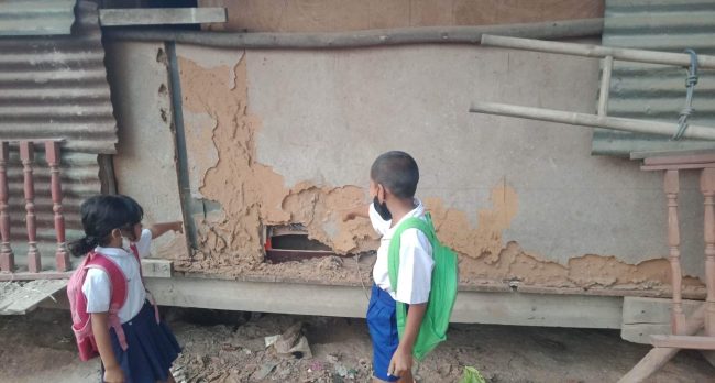น.ส.วนิดา กล่าวด้วยน้ำเสียงสั่นเครือว่า ตนและสามีมีรายได้จากการออกไปทำงานรับจ้าง ได้เงินมาเป็นค่าใช้จ่ายในแต่ละวันแทบจะไม่พอ ไฟฟ้าที่บ้านก็ถูกตัดมาเกือบ1ปีแล้ว เนื่องจากไม่มีเงินไปจ่ายค่าไฟ ลูกทั้ง3คนซึ่งอยู่ในวัยเรียน ต้องใช้วิธีจุดเทียนไขเวลาทำการบ้านหรืออ่านหนังสือ ล่าสุดไม้ฝาบ้านก็ถูกปลวกกินจนหลุดลงมาหลายแผ่น หลังคาสังกะสีก็รั่ว พร้อมกับพา พระครูปลัดวิมลสิทธิวัฒน์ เดินดูสภาพความเดือดร้อนรอบๆบ้าน