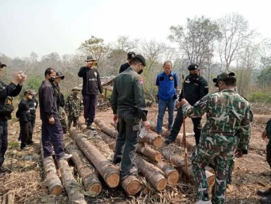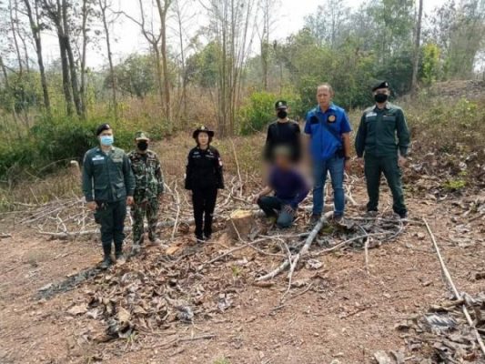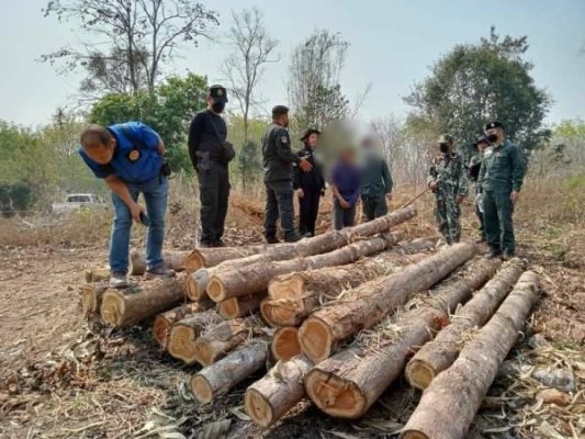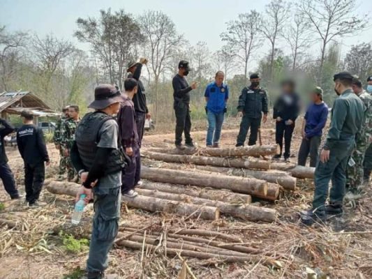 ลำปาง-อ.งาว ระดมกำลัง จับกุมผู้ลักลอบตัดไม้ พื้นที่ป่าสงวนฯ รวบผู้ต้องหาได้ 1 ราย พร้อมไม้ของกลาง 25 ท่อน