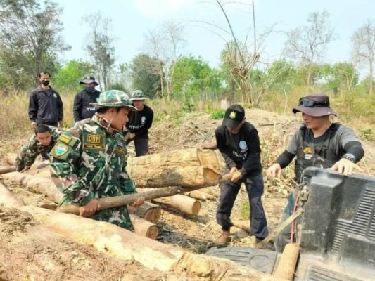 เมื่อเวลา 09.30 น.วันที่ 23 ก.พ.2566 ที่ จ.ลำปาง ผู้สื่อข่าวรายงานว่า นายวันชัย เกตุแก้ว นายอำเภองาว จ.ลำปาง ได้รับแจ้งเหตุลักลอบตัดไม้ทำลายป่าในเขตป่าสงวนแห่งชาติแม่โป่ง ท้องที่บ้านหวดเชี่ยว หมู่ 7 ต.บ้านโป่ง อ.งาว จ.ลำปาง จึงได้มอบหมายให้ นายนิคม พงศ์ปรัชญา ปลัดอำเภอฝ่ายความมั่นคงอำเภองาว นำกำลังเจ้าหน้าที่ปกครอง และสมาชิก อส.อ.งาว เจ้าหน้าที่หน่วยป้องกันรักษาป่าที่ ลป.20(แม่หวด),ลป.19(แม่โป่ง) เจ้าหน้าที่ตำรวจ กก.ตชด.33 จว.เชียงใหม่ เจ้าหน้าที่อุทยานแห่งชาติถ้ำผาไท ร่วมตรวจสอบสามารถจับกุม ผู้ต้องหาได้ 1 คน ตรวจยึดไม้สัก 25 ท่อน จึงได้ร่วมกันควบคุมผู้กระทำผิดพร้อมตรวจยึดไม้ของกลางส่งพนักงานสอบสวน สภ.งาว จ.ลำปาง ดำเนินคดีต่อไป.