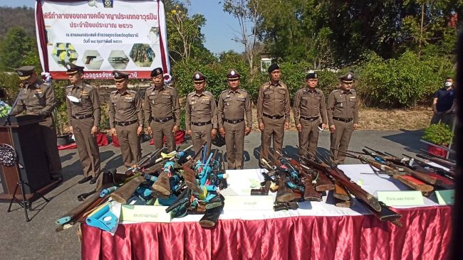 ให้สถานีตำรวจหรือหน่วยงานที่มีอำนาจสอบสวน ปฏิบัติหน้าที่อย่างเคร่งครัด ภ.จวอุทัยธานี ซึ่งประกอบด้วยสถานีตำรวจในพื้นที และกองกำกับการสืบสวนตำรวจอุทัยธานี ได้ร่วมกันระดมกำลังกวาดล้างจับกุมอาวุธปืนจำนวน 176 กระบอก ได้ตั้งคณะกรรมการคำสั่งของสำนักงานตำรวจแห่งชาติ และได้กำหนดให้มีพิธีทำลายของกลางในคดีอาญาประเภทอาวุธปืนในวันนี้ โดยใช้รถบดปืนทำลาย