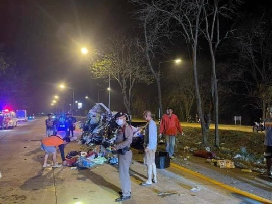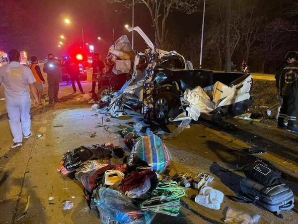 ที่เกิดเหตุบนถนนสายดังกล่าว พบกระเป๋าใส่เสื้อผ้า สิ่งของ และเศษอะไหล่รถเกลื่อนถนน ริมถนนพบรถยนต์กระบะยี่ห้อโตโยต้า รีโว่ สีขาว หมายเลขทะเบียน ยธ 9469 เชียงใหม่ สภาพพังยับเป็นเศษเหล็ก บริเวณร่องกลางถนนพบผู้บาดเจ็บนอนกระจัดกระจายเป็นหญิง 5 รายและบาดเจ็บสาหัส 1 ราย และเป็นชาย 1 ราย ทราบชื่อต่อมา น.ส.กมลชนก แสงคำ อายุ 29 ปี น.ส.ศศิกานนต์ แก้วกองบุญ อายุ 18 ปี นางตอง(ไม่มีนามสกุล) อายุ 28 ปีนางเกี๋ยงคำ (ไม่มีนามสกุล) อายุ 29 ปี อาการสาหัส ทั้งหมดเป็นชาวม้ง อ.ขุนยวม จ.แม่ฮ่องสอน น.ส.พลอยงาม จันทร์ปัญญา อายุ 17 ปี ชาว อ.พิบูลมังสาหาร จ.อุบลราชธานี และนายจาย กันคำ ชาวม้ง อายุ 31 ปี เป็นคนขับขี่ เจ้าหน้าที่จึงทำการปฐมพยาบาลเบื้องต้น ก่อนนำตัวผู้บาดเจ็บทั้งหมดส่ง รพ.เกาะคา