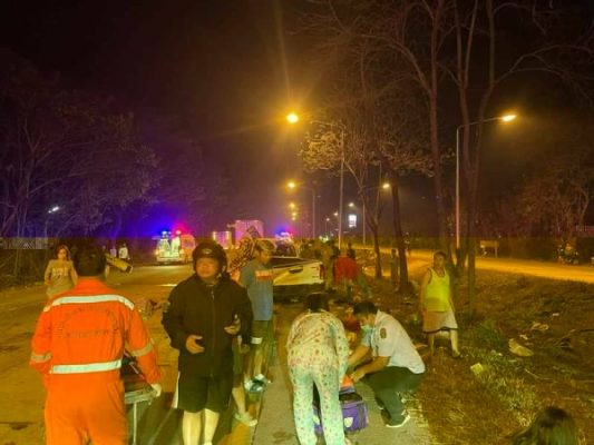 เมื่อเวลา 22.40 น.วันที่ 28 ก.พ.2566 ที่ จ.ลำปาง ผู้สื่อข่าวรายงานว่า ร.ต.อ.อุดม ตาใจ รอง สว.(สอบสวน) สภ.เกาะคา จ.ลำปาง ได้รับแจ้งเกิดอุบัติเหตุรถยนต์กระบะเสียหลักพลิกคว่ำ มีผู้ได้รับบาดเจ็บหลายราย บนถนนพหลโยธินสายลำปาง -สบปราบ ระหว่าง กม.ที่686-687 บ้านม่อนเขาแก้ว ต.วังพร้าว จึงแจ้งประสานเจ้าหน้าที่สมาคมกู้ภัยเกาะคา อาสาสมัครกู้ภัยเกาะคา กู้ภัย ทต.วังพร้าวและทต.ศาลา กู้ชีพ รพ.เกาะคารุดไปตรวจสอบช่วยเหลือ