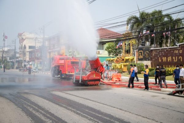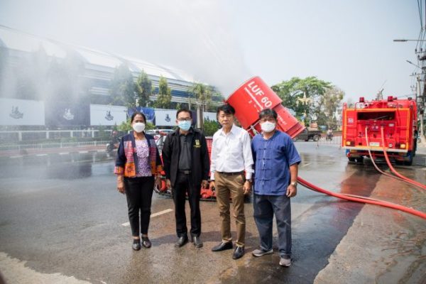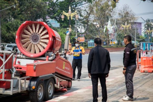 ปภ.สุโขทัย นำรถฉีดพ่นละอองน้ำ ลดฝุ่นละอองขนาดเล็ก (PM2.5) ที่ หน้าเทศบาลเมืองสุโขทัยธานี