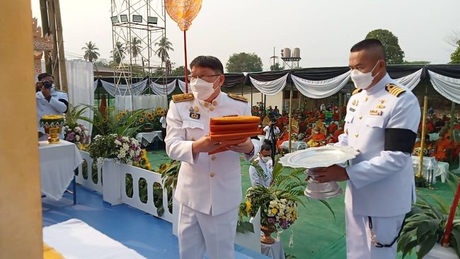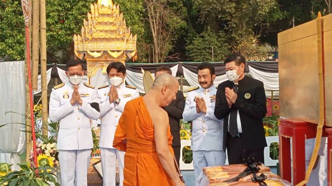 โดยมี นายสุรพันธ์ เจริญทรัพย์ วัฒนธรรมจังหวัดอุตรดิตถ์ เป็นผู้อ่านหมายรับสั่ง และมี นายพีระศักดิ์ พอจิต สมาชิกวุฒิสภา นายศรัณย์วุฒิย์ศรัณเกตุ สมาชิกสภาผู้แทนราษฎรจังหวัดอุตรดิตถ์ร่วมทอดผ้าไตรบังสุกุลพระราชทาน พิจารณาผ้าบังสุกุล วางดอกไม้จันทน์บนจิตกาธาน ปี่ไฉน กลองชนะ ประโคม พระสงฆ์ ร่วมวางดอกไม้จันทน์ ข้าราชการ พ่อค้า ประชาชนที่เป็นศิษยานุศิษย์เข้าร่วมพิธีจำนวนมาก ซึ่งเป็นการจัดพิธีแบบประเพณีพื้นถิ่นล้านนาทางเหนือ