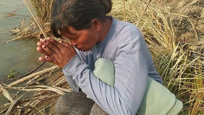 ล่าสุดนางใบทอง หรือภรรยา ของผู้สูญหาย ได้นำธูปมาจุดไหว้เจ้าที่เจ้าทาง พร้อมโยนหมอนที่ผู้ตายนอนหนุน โยนลงน้ำเชื่อคำโบราณ แต่ก็ยังไร้วี่แวว ซึ่งครั้งนี้กู้ภัยได้ใช้เวลางมหาถึง 5 ชั่วโมง แต่ยังไม่พบ ทั้งหาที่บริเวณป่าอ้อยก็ยังไร้วี่แวว จึงได้ยุติการค้นหา ช่วงเช้าจึงระดมหาผู้สูญหายอีกครั้ง ทั้งบนบกและทางน้ำ