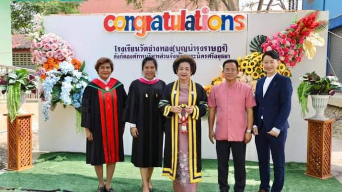 นางสมทรง พันธ์เจริญวรกุล นายกองค์การบริหารส่วนจังหวังหวัดพระนครศรีอยุธยา พร้อมด้วยคณะผู้บริหาร องค์การบริหารส่วนจังหวัดฯ คณะผู้บริหารโรงเรียนวัดช่างทอง (บุญบำรุงราษฎร์) พระครูพิชัยเดชารักษ์ เจ้าอาวาสวัดช่างทอง และผู้ปกครองนักเรียน ร่วมพิธีมอบประกาศนียบัตรนักเรียนที่จบการศึกษาระดับปฐมวัยชั้นปีที่ 3
