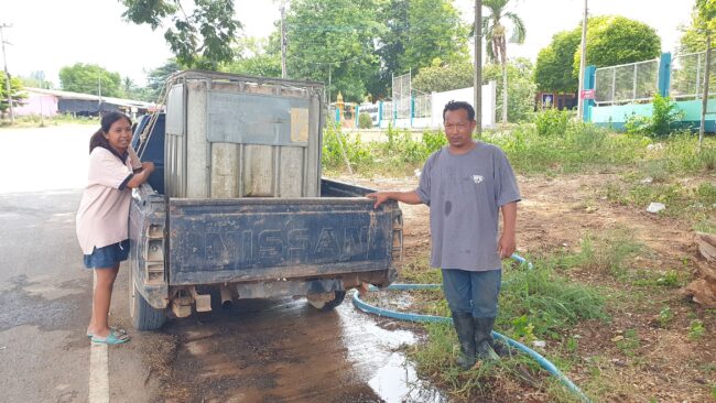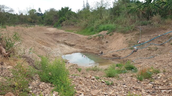 วันที่ 30 พ.ค.66 ผู้สื่อข่าวได้รับแจ้งจาก นายอรรถพล แจ้งเรื่อง นายกองค์การบริหารส่วนตำบลป่าเด็ง อ.แก่งกระจาน นายอุทัย คงสบาย เลขานุการสภา อบต.ป่าเด็ง และ นายประจวบ ชุ่มจิตร ส.อบต. หมู่ที่5 บ้านสวนใหญ่พัฒนา ต.ป่าเด็ง อ.แก่งกระจาน จ.เพชรบุรี ว่าสถาณ์การณ์น้ำ ในแม่น้ำปราณบุรี และลำห้วยห้วยโสกในพื้นที่ตำบลป่าเด็ง อ.แก่งกระจาน แห้งขอดเหลือแต่สันดรทรายและหินโผล่ขึ้นมาตลอดสาย ทำให้ชาวบ้านที่ทำการเกษตร ปลูกทุเรียน และทำการปศุสัตว์ในโครงการสหกรณ์โคนมวัว ที่สร้างเม็ดเงินให้แก่จังหวัดกว่าปีละ 200ล้านบาท กำลังประสบปัญหาขาดน้ำอย่างหนัก ต้นทุเรียนที่เป็นพืชเศรษฐกิจของตำบลป่าเด็ง กำลังประสบปัญหาขาดน้ำยื่นต้นตาย และกำลังขายเป็นวงกว้าง ทาง อบต.ป่าเด็ง ได้น้ำรถน้ำออกแจกจ่ายแก่ชาวบ้านที่ได้รับผลกระทบทั้ง 10หมู่บ้าน แต่ก็ยังไม่เพียงพอต่อความต่อการของชาวบ้านเนื่องจากทาง อบต.มีรถน้ำแค่คันเดี่ยว จึงวอนชลประทาน และ (ปภ.)สำนักงานป้องกันและบรรเทาสาธารณะภัย และหน่วยงานที่เกี่ยวข้องยื่นมือเข้ามาช่วยเหลือชาวบ้าน