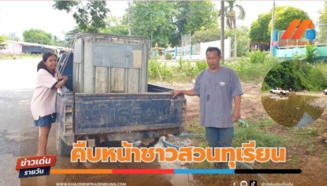 นายประจวบ ชุ่มจิตร ส.อบต.หมู่ที่5 บ้านสวนใหญ่พัฒนา เปิดเผยว่า สถานการณ์น้ำในพื้นที่ ม.5 บ้านสวนใหญ่พัฒนา กำลังประสบปัญหาน้ำแห้งอย่างหนัก ชาวบ้านต้องจ้างรถแมคโคมาขุดหาน้ำกันเอง ชาวบ้านส่วนมากปลูกทุเรียนทั้งตำบลเป็นหลักส่งผลกระทบให้ต้นทุเรียนยื่นต้นตายเป็นจำนวนมากเพราะขาดน้ำ ตอนนี้ทางหน่วยงานที่เกี่ยวข้องยังไม่มีงบประมาณมาช่วยเหลือทาง อบต.ป่าเด็ง เพราะยังไม่ประกาศภัยแล้ง ต้องแนะนำให้ชาวบ้านช่วยเหลือตัวเองไปก่อน