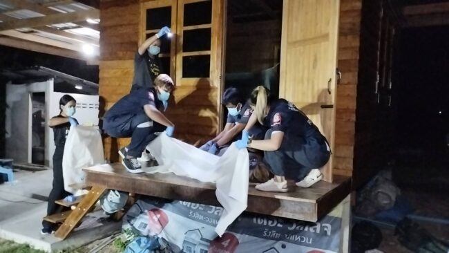 เมื่อเวลา 21.00.น.ของวันที่ 02 มิ.ย.66 กู้ภัยอุทัยธานีจุดเมืองได้รับแจ้งจากชาวบ้านว่ามีหญิงนอนเสียชีวิตร่างไหม้เกรียมอยู่หน้าบ้านเลขที่76 ม.6 บ้านหนองสลิด ต.ดอนขวาง อ.เมือง จ.อทัยธานี หลังที่ได้รับแจ้ง ร.ต.อ จรัญ สีทับทิม ร้อยเวรสภ.เมืองอุทัยธานี พร้อมกู้ภัยอุทัยธานี จุดเมือง แพทย์เวรรพ.อุทัยธานี รีบรุดมายังที่เกิดเหตุ พบชาวบ้านยืนมุงอยู่ที่หน้าบ้าน บ้านที่เกิดเหตุเป็นบ้านไม้หลังเล็ก ยกสูงชั้นเดียว บริเวณหน้าบ้านปลูกสวนกล้วย หน้าบ้านมีส้มแผ่นตากแห้งอยู่ที่หน้าบ้าน ที่หน้าประตูบ้านพบศพหญิงสวมผ้าถุงนอนดับอยู่ที่หน้าบ้าน สภาพร่างผู้ตายนอนหงายไหม้เกรียมดำเกือบทั่วร่าง เริ่มส่งกลิ่นเหม็น ในที่เกิดเหตุพบลูกชายของผู้เสียชีวิตยืนให้การกับจนท.ตำรวจ เบื้องต้น แพทย์เวร.ได้พลิกศพตรวจร่างผู้ตาย ไม่พบร่องรอยของร่างกายถูกทำร้าย สภาพศพดำไหม้เกรียม เสียชีวิตมามากกว่า 24 ชั่วโมง