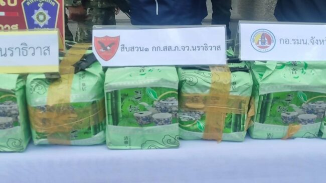 โดย พล.ต.ต.อนุรุธ ผบก.ภ.จว.นราธิวาส กล่าวว่า สืบเนื่องจากมีแหล่งข่าวแจ้งประสาน จะมีการลักลอบขนย้ายยาเสพติดซึ่งเป็นยาไอช์ จากพื้นที่ภาคกลางลงมาส่งในพื้นที่ จ.นราธิวาส โดยใช้รถยนต์ 10 ล้อ จึงได้ประสานไปยัง พ.ต.อ.ศุภชัช ณ พัทลุง ผกก.สภ.ตากใบ เจ้าหน้าที่ตำรวจหน่วยปฏิบัติการพิเศษ ฉก.นราธิวาส 93 ได้ร่วมสนธิกำลังในการขับรถยนต์ลาดตระเวนตรวจสอบรถต้องสงสัย บนถนนในเขตรับผิดชอบ สภ.ตากใบ รวมทั้งการกระจายตั้งจุดตรวจจุดสกัดลอยบนถนนเส้นทางต่างๆ จนกระทั่งพบรถยนต์ 10 ล้อ ต้องสงสัยที่ขับผ่านเข้าไปยังเส้นทางในหมู่บ้านสะหริ่ง เจ้าหน้าที่ได้แสดงตัวเพื่อขอตรวจค้น แต่นายชาญชัย คนขับมีท่าทีพิรุธ เมื่อตรวจสอบที่บริเวณกระบะหลังซึ่งมีผ้าใบปิดทับไว้ เมื่อแกะตรวจสอบพบถุงกระสอบพลาสติกลายสก๊อต จำนวน 10 กระสอบ ซึ่งภายในกระสอบมียาไอช์ซุกซ่อนอยู่ น้ำหนัก 250 ก.ก. เจ้าหน้าที่จึงได้ควบคุมตัวพร้อมของกลางไปที่ สภ.ตากใบ