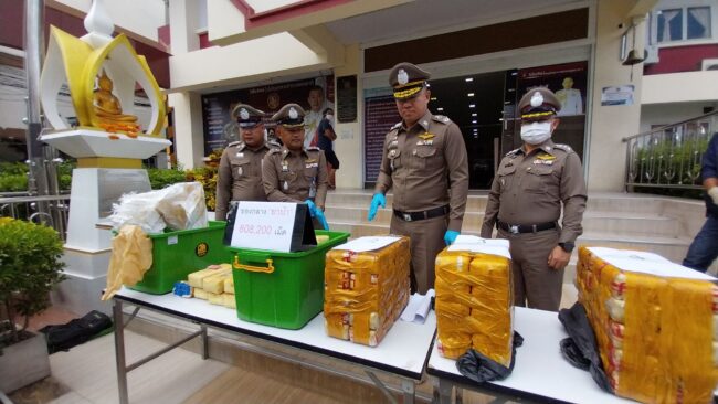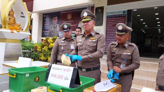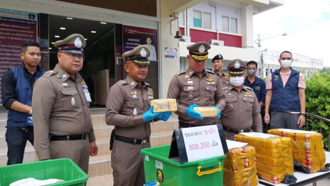 ผู้การปากน้ำ แถลง จับพ่อค้ายาเสพติดรายใหญ่ในพื้นที่อำเภอบางพลี พร้อม ยึดของกลางยาบ้าเกือบล้านเม็ด