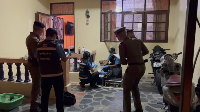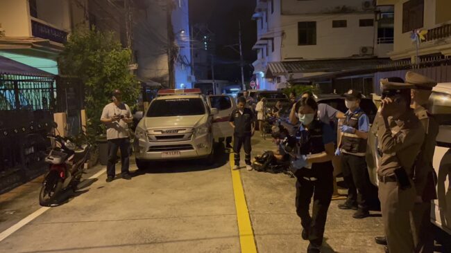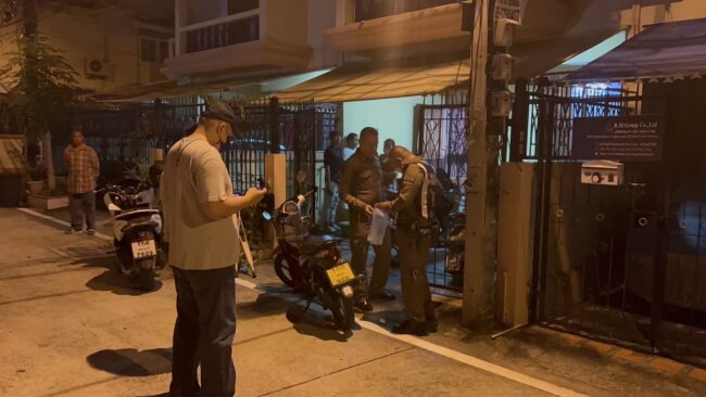 เมื่อเวลา 20.00 น.วันที่ 11 มิถุนายน 2566 พ.ต.อ.ฐนพงศ์ โพธิ์ทิ ผกก.สภ.เมืองพัทยา พ.ต.ท.สุรเชษฐ์ เอนกศรี รอง ผกก.ป.สภ.เมืองพัทยา พ.ต.ท.ชัยณรงค์ จิตต์สุทร สว.สส.สภ.เมืองพัทยา รับแจ้งเหตุใช้อาวุธปืนยิงกัน มีผู้เสียชีวิต เหตุเกิดที่ทาวน์เฮ้าส์ เลขที่ 237/40 ม.9 ต.หนองปรือ อ.บางละมุง จ.ชลบุรี หลังรับแจ้งจึงพร้อมด้วยพ.ต.ท.สายใจ คำจุลลา สว.สอบสวน สภ.เมืองพัทยา รีบนำกำลังเจ้าหน้าที่ตำรวจ เจ้าหน้าที่กู้ภัยสว่างบริบูรณ์ธรรมสถานเมืองพัทยา และเจ้าหน้าที่ตำรวจกองพิสูจน์หลักฐานเขตสองจังหวัดชลบุรี รีบไปตรวจสอบ