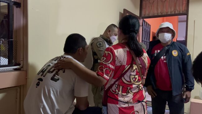 สอบถามนายมานิตย์ เจริญภู อายุ 30 ปี ผู้ก่อเหตุทราบว่า คบหากับภรรยาคนนี้มากว่า 10 ปี กระทั่งมีปัญหาระหองระแห่งกันมาตลอด ก่อนจะเลิกลากันไปแล้วกลับมาอยู่ด้วยกันอีกครั้ง เพราะหวังว่าจะสร้างครัวไม่อยากให้ลูกชายทั้งสองคนมีปมด้อย แต่ก็ไม่เป็นอย่างที่คิด เมื่อพบว่าภรรยามักจะชอบแอบคุยกับคนอื่น เมื่อตนเองเค้นถามว่าก่อนหน้านี้ไปอยู่กับใคร เป็นอย่างไรบ้าง ก็พยายามจะหนีอย่างเดียว แต่พลาดทำโทรศัพท์มือถือหล่น ตนเองจึงเห็นรูปภาพ ภรรยากับผู้ชายอื่นที่โพสต์ลงบนโซเชียลเน็ตเวลิค จึงได้มีปากเสียงกันอีกครั้ง ก่อนจะเกิดอารมณ์ชั่ววูบหยิบปืนที่ซื้อเก็บไว้ มายิงใส่ภรรยาจนนอนแน่นิ่งไป โดยลูกชายวัย 7 ขวบก็อยู่ในเหตุการณ์ด้วย ก่อนลูกชายวัย 10 ขวบ จะกลับบ้านมาเห็นเหตุการณ์ภายหลัง โดยหลังก่อเหตุไม่ได้คิดหนี แต่กำลังจะตัดสินใจยิงตัวตายตาม แต่ลูกชายทั้งสองคน เข้ามาเรียก พ่อ เมื่อตนเองหันมาเจอหน้าลูกจึงเปลี่ยนใจแล้วเก็บปืน แล้วเรียกลูกเข้ามากอดร้องไห้ ก่อนเจ้าหน้าที่จะเข้ามาควบคุมตัวพร้อมอาวุธปืนดังกล่าว
