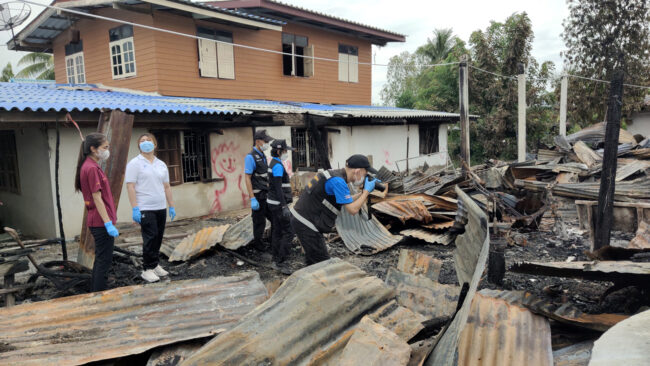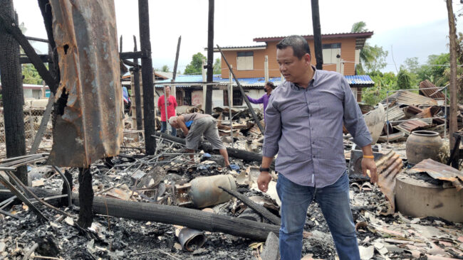 สุพรรณบุรีไฟไหม้บ้านวอด2หลังลูกชายอุ้มแม่ป่วยติดเตียงฝ่าเปลวไฟหนีตายตกบันไดเจ็บ