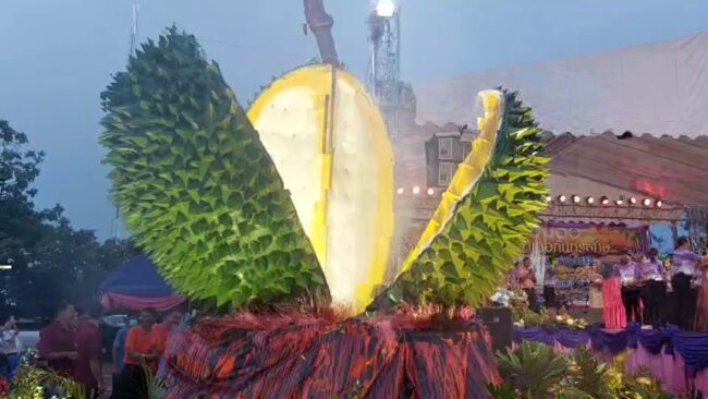 นายสุกิจ เหลืองสกุลไทย นายอำเภอกันทรลักษ์ กล่าวว่า อำเภอกันทรลักษ์ เป็นที่ราบเชิงเขาปริมาณน้ำฝนและภูมิอากาศที่เหมาะสม ดินคุณภาพสูง เป็นดินภูเขาไฟ ราษฎรส่วนใหญ่ประกอบอาชีพด้านการเกษตรกรรม มีพืชผลทางการเกษตรเช่น ทุเรียน เงาะ มังคุด ลองกอง ฝรั่ง ลิ้นจี่ สะตอ และมีผลผลิตออกสู่ตลาดตลอดทั้งปี โดยเฉพาะทุเรียนภูเขาไฟ GI อำเภอกันทรลักษ์ เป็นพืชเศรษฐกิจสร้างชื่อเสียงให้กับจังหวัดศรีสะเกษ มีรสชาดอร่อยกรอบนอก นุ่มใน กลิ่นไม่ฉุน เมล็ดลีบ ละมุนที่ลิ้น ละลายที่ใจ มีพื้นที่ปลูกทุเรียนในพื้นที่ 17 ตำบล 126 หมู่บ้าน เป็นเกษตรกร 1,597 ราย จำนวน 1,923 แปลงมีพื้นที่ปลูกทุเรียน 10,392 ไร่ มากเป็นอันดับที่ ๑ ของจังหวัดศรีสะเกษ พื้นที่ให้ผลผลิตแล้ว 6,084 ไร่ คาดการณ์ผลผลติ ปี2566 มีผลผลิตรวม 5,000 ตัน สร้างมูลค่าให้เกษตรกรผู้ปลูกประมาณ 580 ล้านบาทต่อปี จึงขอเชิญชวนนักชิมทุเรียนภูเขาไฟเที่ยวชมงานเทศกาลผลไม้และของดีอำเภอกันทรลักษ์ ในระหว่างวันที่ 15-21 มิถุนายน 2566 ที่บริเวณสนามหน้าที่ว่าการอำเภอกันทรลักษ์ จังหวัดศรีสะเกษด้วย