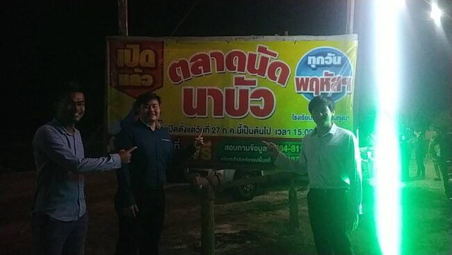 โดยสอบถามกับผู้จัดตลาดนัด ซึ่งเป็นทนายความหนุ่ม ทั้ง 3 คน ชื่อทนายโอ๊ด อายุ 42 ปี ทนายเกมส์ อายุ 26 และทนายบีม อายุ 25 ปี ที่บจก.เบทเทอร์ ลีกัล ในพื้นที่ ม.1 ตลาดทุ่งนา ต.เขาบางแกรก อ.หนองฉาง จ.อุทัยธานี โดยทนายเกมส์ได้เปิดเผยว่า ครั้งนี้ที่ทางทนายเราทำนั้น ก็เพื่อปากท้องและความเป็นอยู่ของชาวบ้าน อยากให้ชาวบ้านมีรายได้เพิ่มขึ้น และลดต้นทุนในการใช้จ่าย พร้อมกับเศรษฐกิจในช่วงนี้ชาวบ้านค่อนข้างลำบาก ข้าวของแพง อยากช่วยให้ชาวบ้านซื้อของให้ถูกลง และในครั้งนี้ ทางทีมงานรถเครื่องเสียงเกือบ 30 คัน ก็สละเวลามาเล่นเครื่องเสียงเปิดงานให้กับทางตลาดนาบัว โดยเล่นฟรีตลอดงาน แถมยังได้รับของบริจาค จากทางเครื่องเสียงแต่ละคัน ที่มาเล่นภายในงานฟรีในครั้งนี้ ทางทีมงานดีเจนั้น จะนำข้าวของทั้งหมด เรี่ยไรให้กับผู้ยากไร้ตามแต่ละจังหวัดโดยทั่วถึง อีกทั้งกิจกรรมเปิดตลาดในครั้งนี้