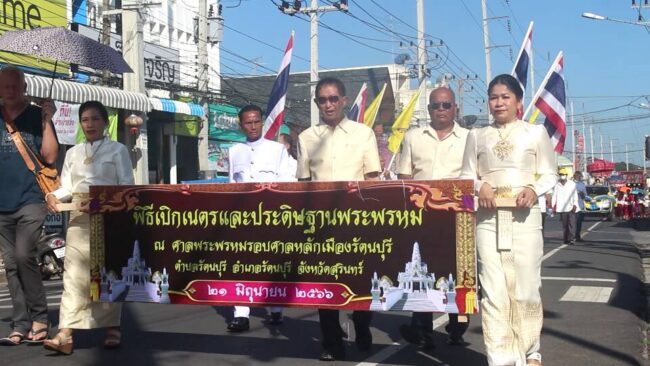 สุรินทร์-ชาวบ้านเชื่อปังปังงวดนี้เลขเด็ดมงคลพิธีเปิดเนตรพระพรหม4หน้าศาลหลักเมืองรัตนบุรี