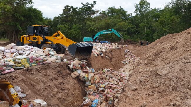 สำหรับการฝังทำลายเนื้อกระบือของกลางในวันนี้ มีจำนวนมากถึง 110,079 กิโลกรัม มูลค่ารวม 14,529,665 บาท พร้อมย้ำว่า ได้กำชับกรมปศุสัตว์ให้เข้มงวดในการป้องกันและปราบปรามการลักลอบนำเข้าเนื้อสัตว์และสัตว์มีชีวิตอย่างต่อเนื่อง