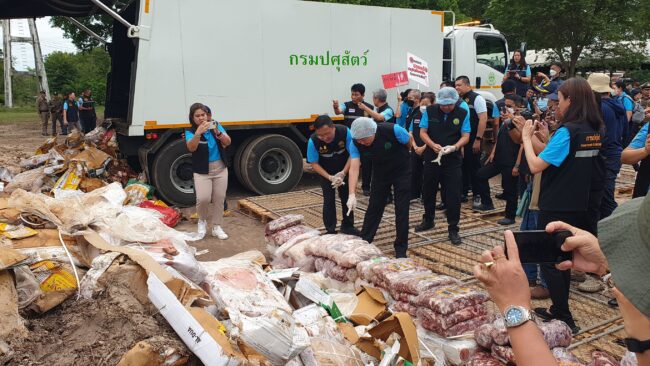 “เฉลิมชัย” ฝังทำลายเนื้อกระบือเถื่อนกว่า 110 ตัน ย้ำจับจริงขบวนการลักลอบนำเข้า