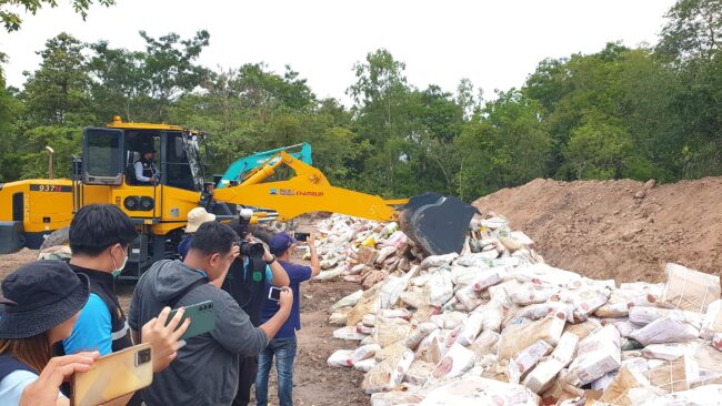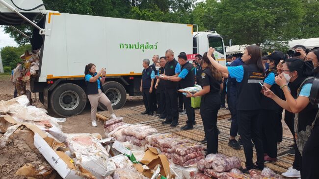 รมว. เกษตรเป็นประธานพิธีฝังทำลายกระบือของกลางลักลอบนำเข้ากว่า 110 ตัน ณ ศูนย์กักกันสัตว์เพชรบุรี ย้ำนโยบายป้องกันและปราบปรามการลักลอบนำเข้าเนื้อสัตว์อย่างเข้มงวด หากพบ จับอย่างเดียว อธิบดีกรมปศุสัตว์เผย ตลอดปี 2565 ถึงปัจจุบัน จับกุมการลักลอบนำเข้าเนื้อกระบือและโคแล้ว 88 ครั้ง น้ำหนักรวมกว่า 354 ตัน คิดเป็นมูลค่ากว่า 53.2 ล้าน