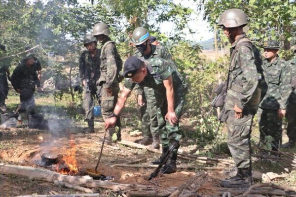 ผู้บังคับการกรมทหารม้าที่ 2 ตรวจเยี่ยมการฝึกเดินทางไกล พักแรม และดำรงชีพในป่าของกำลังพลทหารใหม่ ให้กำลังใจ ในบทเรียนของวิทยาลัยลูกผู้ชาย