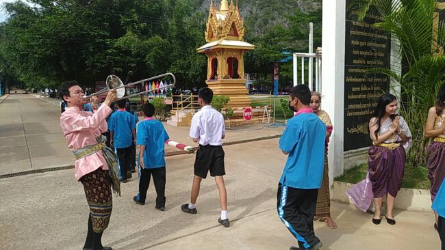 ผอ.อนุพงศ์ มั่นพรม (เสื้อสีชมพู เป็นคนเป่าแตร)
