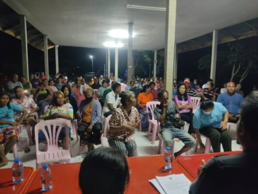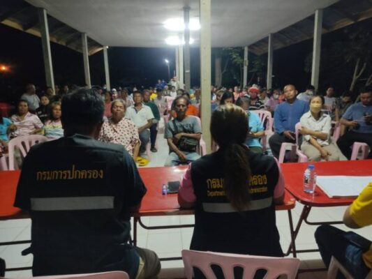 นายธีรพงษ์ กงนะ ผู้ใหญ่บ้าน หมู่ 6 เปิดเผยว่า ในวันนี้เป็นการประชุมประจำเดือนปกติ แต่ได้สอดแทรกเรื่องเหมืองแร่ที่ขอประทานบัตรเหมืองแร่ ของบริษัทเอกชน แห่งหนึ่งที่ขอไว้ และวันนี้มาแสดงความคิดเห็นของชาวบ้าน ระหว่างหมู่ 6 และหมู่ 11 ว่ามีความคิดเห็นอย่างไร หากเกิดเหมืองขึ้นมาจะมีผลกระทบอะไรบ้างกับชาวบ้าน ซึ่งได้รับความร่วมมือเป็นอย่างดี มีประชาชนอยู่รอบข้างเคียงบริเวณเหมือง ได้มาแสดงความคิดเห็นร่วม ถือเป็นการดีจะได้รู้ว่าเป็นอย่างไร จะได้นำเรื่องนี้ส่งนายอำเภอเมืองต่อไป ซึ่งพื้นที่ดังกล่าวจะมีโครงการก่อสร้างโรงพยาบาล ซึ่งชาวบ้านก็อยากได้โรงพยาบาล และชาวบ้านที่มาในวันนี้เห็นดีด้วย และไม่เห็นดีด้วย และจะนำเอกสารดังกล่าวจะนำส่งนายอำเภอเมือง และผู้ว่าราชการจังหวัดต่อไป