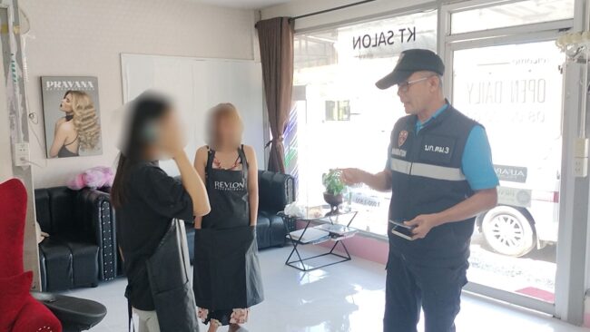 **** โดยเมื่อวันที่ 7 กรกฎาคม 2566 เจ้าหน้าที่ตรวจคนเข้าเมืองสมุทรปราการ ได้นำกำลังตรวจสอบต่างด้าวในพื้นที่ จากกรณีมีประชาชนให้เบาะแสร้องเรียนว่ามี ร้านเสริมสวย 2 แห่ง ที่ อำเภอบางเสาธง จังหวัดสมุทรปราการ มีคนต่างด้าวทำงานเป็นช่างเสริมสวยอยู่ภายในร้าน ซึ่งเป็น อาชีพที่ต้องห้ามสงวนไว้ให้กับคนไทยเท่านั้น จึงได้บูรณาการร่วมกับ จัดหางานจังหวัดสมุทรปราการ เข้าตรวจสอบ โดยให้เจ้าหน้าที่แฝงตัวเข้าไปใช้บริการเสริมสวย