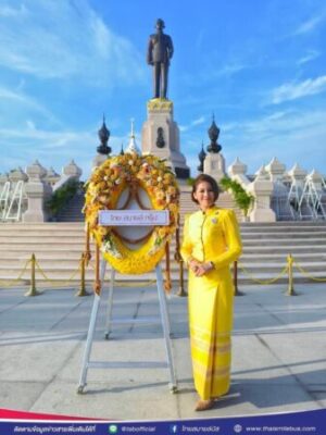 นางสาวกุลพรภัสร์ วงศ์มาจารภิญญา ประธานเจ้าหน้าที่บริหาร บริษัท ไทย สมายล์ บัส จำกัด นำทีมผู้บริหารของบริษัท เข้าร่วมพิธีน้อมรำลึกในพระมหากรุณาธิคุณ เนื่องในวันคล้ายวันสวรรคต พระบาทสมเด็จพระบรมชนกาธิเบศร มหาภูมิพลอดุลยเดชมหาราช บรมนาถบพิตร วันนวมินทรมหาราช 13 ตุลาคม 2566 ณ พระบรมราชานุสาวรีย์ พระบาทสมเด็จพระบรมชนกาธิเบศร มหาภูมิพลอดุลยเดชมหาราช บรมนาถบพิตร อุทยานเฉลิมพระเกียรติ สนามม้านางเลิ้ง เขตดุสิต กรุงเทพมหานคร