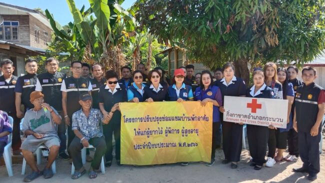 นายอำเภอกระนวน ร่วมกับ กิ่งกาชาดอำเภอกระนวน บูรณาการภาครัฐ และ ชุมชน ซ่อมแซมสร้างบ้าน 6 หลัง และรถเข็น