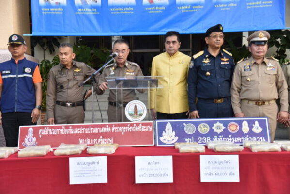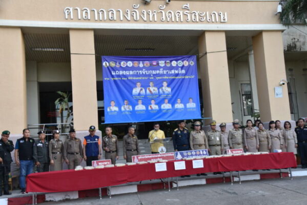 ศรีสะเกษ !! ผู้ว่าฯศรีสะเกษแถลงผลการจับกุมเครือข่ายคดียาเสพติดตามยุทธการพิฆาตทรชนคนค้ายาอีสานใต้ ภ.3 และ238 พิทักษ์นครลำดวนจับกุมผู้ต้องหา 234 คน ของกลางยาบ้า 491,111 เม็ด