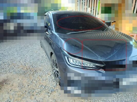 หญิงสาวโพสต์เตือนภัยขับรถกลับบ้านเจอเชือกขึงกั้นกลางถนนรถยนต์เสียหลักเกือบลงข้างทางโชคดีไม่เป็นอะไรมาก