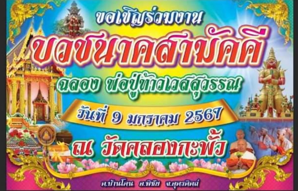 พระอาจารย์ศักดิ์สิทธิ์ กล่าวเพิ่มเติมว่า ในวันที่ 9 มกราคม 2566 ทางวัดได้มีการจัดให้มีการบวชนาคสามัคคีอุปสมบทหมู่ เพื่อเป็นการฉลองพ่อปู่ท้าวเวสสุวรรณ ที่ประดิษสถาน ภายในวัดคลองกะพั้ว ซึ่งมีขนาดใหญ่ที่สุดในจังหวัดอุตรดิตถ์ จึงฝากถึงคณะศรัทธาที่มีความประสงค์จะร่วมทำบุญก็ขอเรียนเชิญมาร่วมบุญกันได้ที่ วัดคลองกะพั้ว ต.บ้านโคน อ.พิชัย จ.อุตรดิตถ์หรือสามารถโทรมาสอบถามข้อมูลเพิ่มเติมได้ที่ 0861999864