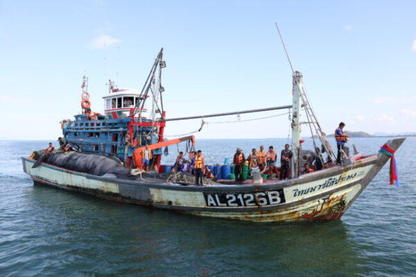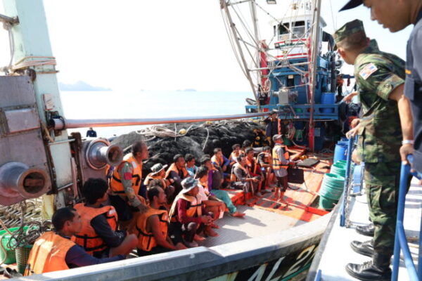 สตูล บูรณาการออกตรวจแรงงานในเรือประมงทางทะเล ป้องกันการค้ามนุษย์และกระทำสิ่งผิดกฎหมายในพื้นที่จังหวัดชายแดนภาคใต้ บริเวณร่องน้ำปากบารา อำเภอละงู จังหวัดสตูล