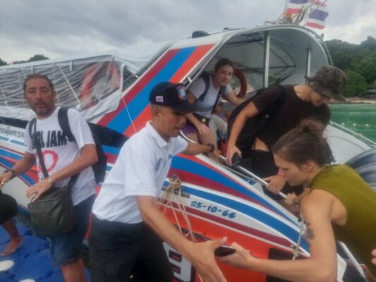 เมื่อวันที่ 24 ธันวาคม 2566ที่ผ่านมา พ.ต.ท.ศักดิ์อนันต์ คาไสย สารวัตรใหญ่ สถานี ตารวจท่องเที่ยว 1 กองกากับการ 3 กองบังคับการตารวจท่องเที่ยว 3 รับผิดชอบพื้นที่ท่องเที่ยวจังหวัด สงขลา – สตูล ได้รับแจ้งจากเจ้าท่าจังหวัดสตูล เกิดเหตุเรือเร็วโดยสาร (Speedboat) ซึ่งมีนักท่องเที่ยว ต่างชาติจานวนกว่า 70 คน เดินทางออกจากท่าเรือบันดาหยา เกาะหลีเป๊ะ จังหวัดสตูล มุ่งหน้า เกาะลันตา จังหวัดกระบี่ เจอคลื่นลมแรง เกยตื้นบริเวณเกาะเหล็ก ตำบลเกาะตะรุเตา อำเภอเมือง จังหวัดสตูล ไม่สามารถ เดินทางต่อไปได้ ประสงค์ให้นำเรือ มารับนักท่องเที่ยวกลับเข้าฝั่งเกาะหลีเป๊ะ จึง ได้รายงา นให้ พ.ต.อ.กฤษณัฐ มนัส ผู้กากับการ 3 กองบังคับการตำรวจท่องเที่ยว 3 ทราบ จึงได้สั่งการให้เจ้าหน้าที่ ตำรวจท่องเที่ยวสายตรวจเกาะหลีเป๊ะ เข้าประสานงานช่วยเหลือ นักท่องเที่ยวโดยทันที โดยร่วมบูรณา การกาลังกับเจ้าหน้าที่เจ้าท่าเกาะหลีเป๊ะ สายตรวจ สภ.เกาะหลีเป๊ะ ประสานเรือเร็วโดยสาร(Speedboat) บริษัท พลอยสยาม 559 ไปรับนักท่องเที่ยวกลับมายังท่าเรือบันดาหยาเกาะหลีเป๊ะ ขึ้นฝั่งได้อย่าง ปลอดภัยทุกคน ช่วยอำนวยความสะดวกประสานงานบริษัทบันดาหยาสปีดโบ๊ท ในการส่งน้กท่องเที่ยว บางส่วนกลับเกาะลันตา โดยสารเรือไปยังท่าเรือปากบารา แล้วทางบริษัทบันดาหยา จัดรถตู้ส่ง ต่อไปยังเกาะลันตา โดยมีตำรวจท่องเที่ยวสายตรวจปากบารา คอยอำนวยความสะดวกรับนักท่องเที่ยว จากท่าเรือ ส่งขึ้นรถตู้เดินทางไปยังเกาะลันตา และยังมีนักท่องเที่ยวบางส่วน ประสงค์เดินทาง ไป ยังเกาะลันตา ทางเรือ ในวันนี้(25 ธ.ค.2566) จึงประสาน บริษัทบันดาหยา ให้ จัดที่พัก เพื่อให้นักท่องเที่ยวได้พัก ก่อนเดินทางต่อไป แล้วได้ร่วมกับเจ้าท่า แจ้งประชาสัมพันธ์หยุดเดินเรือเส้นทาง เกาะหลีเป๊ะ-เกาะลันตา เนื่องจากสภาพอากาศปิด ซึ่งนักท่องเที่ยวมีความพึงพอใจ และชื่นชมการทางานของตารวจท่องเที่ยว โดยเข้าใจถึง เหตุการณ์ที่เกิดขึ้น เนื่องจากเป็นเหตุการณ์จากธรรมชาติ
