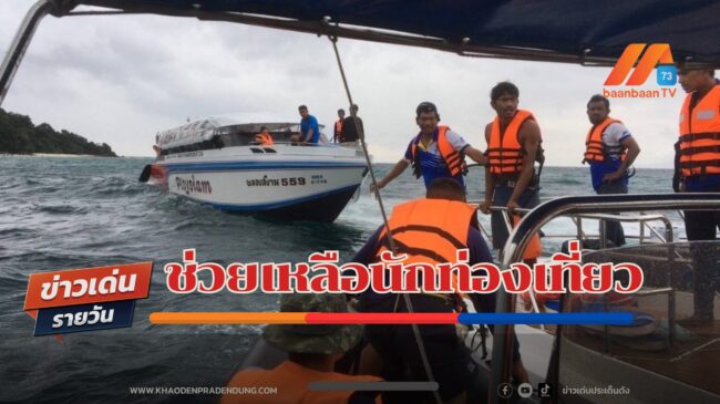 สตูล ตำรวจท่องเที่ยว ช่วยเหลือนักท่องเที่ยว จากเรือสปี๊ดโบ๊ท เจอคลื่นลมแรง เกยตื้นที่เกาะเหล็ก”