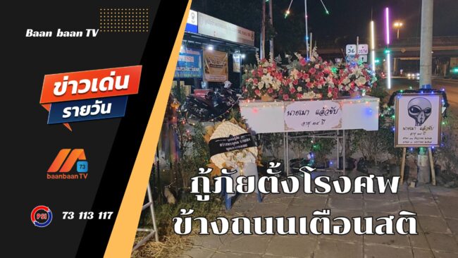 แสงสี เหมือนตั้งศพสวดอภิธรรมบริเวณสี่แยก เตือนสติผู้ขับขี่เมาแล้วขับ อาจกลับไม่ถึงบ้านช่วง 7 วันอันตราย