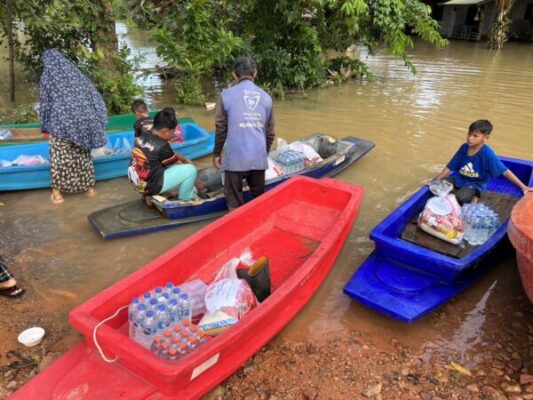 นายสุไลมาน แวมามะ นายกสมาคมสื่อมวลชนจังหวัดชายแดนภาคใต้ เเละสื่อมวลชนปัตตานี สื่อหนังสือพิมพ์ สื่อออนไลน์ เดินทางไปร่วมมอบถุงยังชีพข้าวสารอาหารเเห้ง รวมถึงน้ำดื่มสะอาดให้ผู้ประสบภัยที่โดนน้ำท่วมหนักในพื้นที่ บ้านโคกยาร่วง ต.ลิปะสะโง อ.หนองจิก จ.ปัตตานี ทั้งนี้ สืบเนื่องจากพื้นที่ดังกล่าวถูกน้ำท่วมทั้งหมู่บ้าน มีเเค่ 35 หลังคาเรือน เเต่ไม่เคยมีหน่วยงานไหนเข้ามาดูแลเยียวยาชาวบ้าน หรือส่งมอบถุงยังชีพให้ตลอดช่วงที่เกิดเหตุน้ำท่วมในห้วง3-4วันที่ผ่านมานี้ จนชาวบ้านต้องพายเรือเข้าออกมา เพราะถนนถูกตัดขาดเส้นทางสัญจรลำบาก น้ำลึก บ้านเรือนบางหลังจมบาดาลบางหลังสูงกว่า 1 เมตร ส่วนภายในหมู่บ้านนั้น วัดระดับน้ำได้ 2 เมตรกว่า ประชาชนได้รับความเดือดร้อนเเละใช้ชีวิตยากลำบากมากจากการเกิดอุทกภัยในครั้งนี้