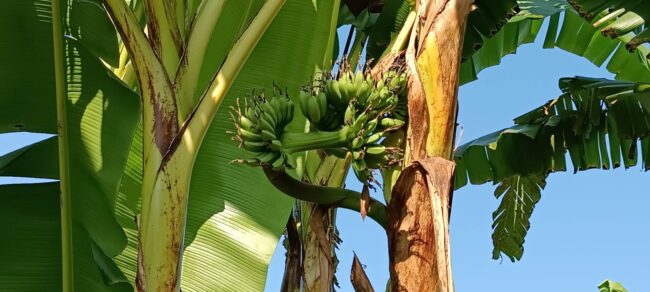นางบุญมา เปิดเผยว่า พบต้นกล้วยประหลาดออกลูกกลางลำต้นที่บ้านจริง โดยเมื่อวันที่ 22 ธ.ค.2566 ที่ผ่านมา สามีคือนายจุมพล อินทิรา อายุ 58 ปี ได้ไปตัดแต่งกิ่งใบกล้วยที่แห้งในสวนหลังบ้าน บังเอิญไปเจอต้นกล้วยลำหนึ่งมีลูกออกกลางลำต้นมีลักษณะประหลาด เพราะไม่มีหัวปลีแต่มีลูกออกมาจากเครือกล้วย คาดว่าออกลูกมาได้ประมาณ 2 เดือน