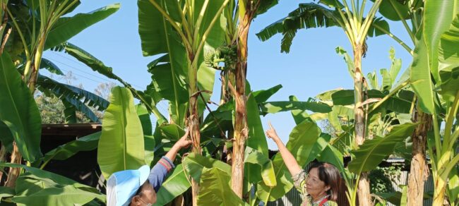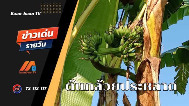 ลำปาง-ชาวบ้านพบต้นกล้วยประหลาดออกลูกกลางลำต้นที่ มีชาวบ้านแห่มุงดู โรยแป้งส่องเลขเด็ดหวังรวยรับโชคดีปีใหม่ 2567