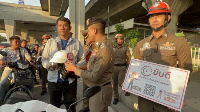นอกจากนี้ยังได้ร่วมกับตำรวจจราจรตรวจการใช้หมวกกันน็อกซึ่งรองผู้บัญชาการตำรวจแห่งชาติได้มอบหมวกกันน็อกให้กับผู้ขับขี่รถจักรยานยนต์ที่ผ่านไปมาและไม่ได้สวมใส่หมวกกันน็อกรวมทั้งผู้โดยสารรถจักรยานยนต์รับจ้างโดยขอความร่วมมือให้ทุกคนสวมใส่หมวกกันน็อกทั้งนี้เนื่องจากพบว่าอุบัติเหตุที่นำมาซึ่งการสูญเสียชีวิตนอกจากเหตุผลการเมาแล้วขับ การเปลี่ยนเลนส์กระทันหัน และการใช้ความเร็วเกินมาตรฐานแล้วพบว่าการไม่สวมใส่หมวกกันน็อกก็เป็นอีกหนึ่งเหตุผลที่ทำให้มีผู้เสียชีวิตจากการกระแทกที่บริเวณศีรษะเป็นจำนวนมาก