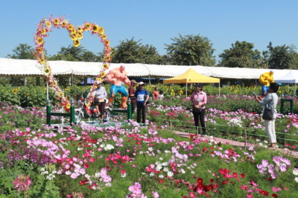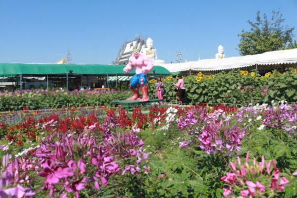 วัดสี่แยกเจริญพร จ.นครปฐม เชิญเที่ยวชมทุ่งทานตะวันและดอกไม้ต่างๆ ที่กำลังบานสะพรั่ง โดยไม่เสียค่าใช้จ่ายใดใดทั้งสิ้น