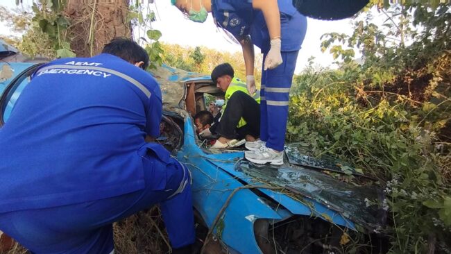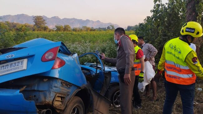 อุทัยธานี ส่งท้ายปีเก่า!!สังเวย2ศพ!!เก๋งหลุดโค้งชนต้นไม้อัดก๊อปปี้ดับคาที่ หลังชาวบ้านเรียกโค้งอีหนืดตายทุกปี