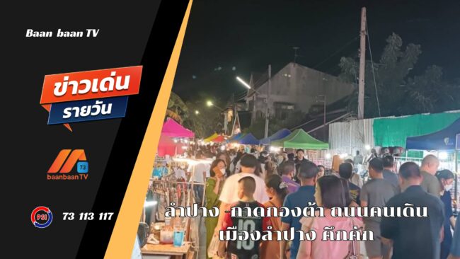 ลำปาง -กาดกองต้า ถนนคนเดิน เมืองลำปาง คึกคัก ในวันหยุดมีนักท่องเที่ยวทั้งชาวไทยและต่างประเทศเดินทางมาเที่ยวจำนวนมากคาดมีเงินสะพัดวันละหลายสิบล้านบาท