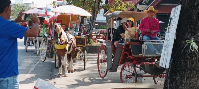เมื่อวันที่ 8 ม.ค. 2567 ที่ จ.ลำปาง ผู้สื่อข่าวรายงานว่า ตั้งช่วงวันหยุดก่อนและหลังเทศกาลปีใหม่ 2567 มีนักท่องเที่ยวทั้งชาวไทยและต่างประเทศเดินทางมาเที่ยว จ.ลำปาง จำนวนมาก ทำให้บรรยากาศการค้าขายทั่วไปคึกคัก โดยเฉพาะผู้ประกอบการรถม้า จ.ลำปาง ที่มีรถม้าบริการนักเที่ยวเพียงแห่งดียวในประเทศ ที่นักท่องเที่ยวเดินทางมาเที่ยวจำนวนมาก ต้องนั่งรถม้าเที่ยวชมเมืองลำปาง สักครั้งจึงจะถือว่ามาถึง จ.ลำปาง ทำให้ผู้ประกอบการรถม้ามีรายได้เพิ่มขึ้น หลังจากช่วงวิกฤติโควิด-19 ช่วง 2-3 ปีที่ผ่านมา บางรายถึงกับขายรถม้าทิ้งไปประกอบอาชีพอื่น เนื่องจากไม่มีรายได้