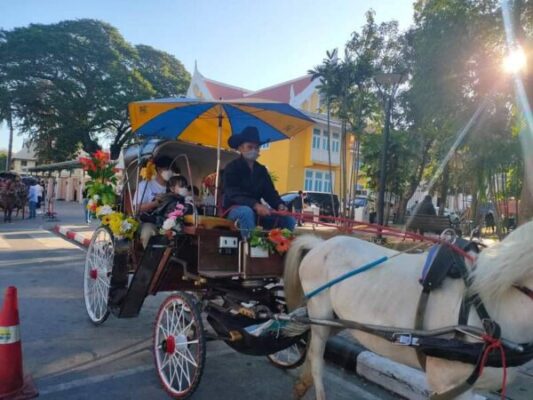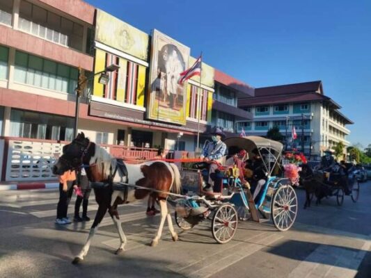 เมื่อวันที่ 8 ม.ค. 2567 ที่ จ.ลำปาง ผู้สื่อข่าวรายงานว่า ตั้งช่วงวันหยุดก่อนและหลังเทศกาลปีใหม่ 2567 มีนักท่องเที่ยวทั้งชาวไทยและต่างประเทศเดินทางมาเที่ยว จ.ลำปาง จำนวนมาก ทำให้บรรยากาศการค้าขายทั่วไปคึกคัก โดยเฉพาะผู้ประกอบการรถม้า จ.ลำปาง ที่มีรถม้าบริการนักเที่ยวเพียงแห่งดียวในประเทศ ที่นักท่องเที่ยวเดินทางมาเที่ยวจำนวนมาก ต้องนั่งรถม้าเที่ยวชมเมืองลำปาง สักครั้งจึงจะถือว่ามาถึง จ.ลำปาง ทำให้ผู้ประกอบการรถม้ามีรายได้เพิ่มขึ้น หลังจากช่วงวิกฤติโควิด-19 ช่วง 2-3 ปีที่ผ่านมา บางรายถึงกับขายรถม้าทิ้งไปประกอบอาชีพอื่น เนื่องจากไม่มีรายได้