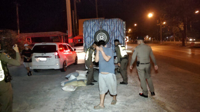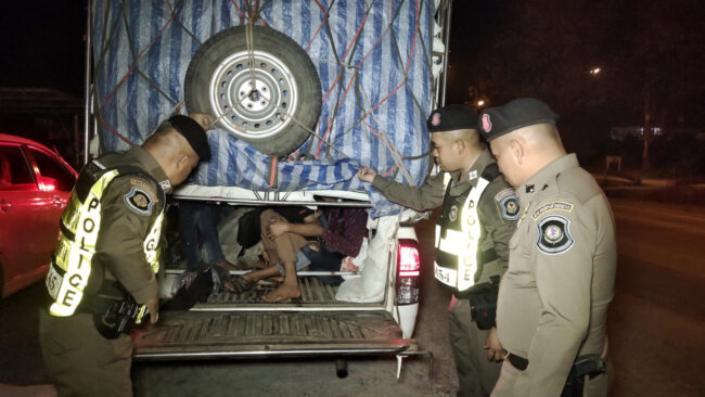 สุพรรณบุรีทางหลวงศรีประจันต์จับกระบะดัดแปลงเป็นอุโมงขนต่างด้าว2ราย25คนมีคนโทรศัพท์ขอเคลียร์